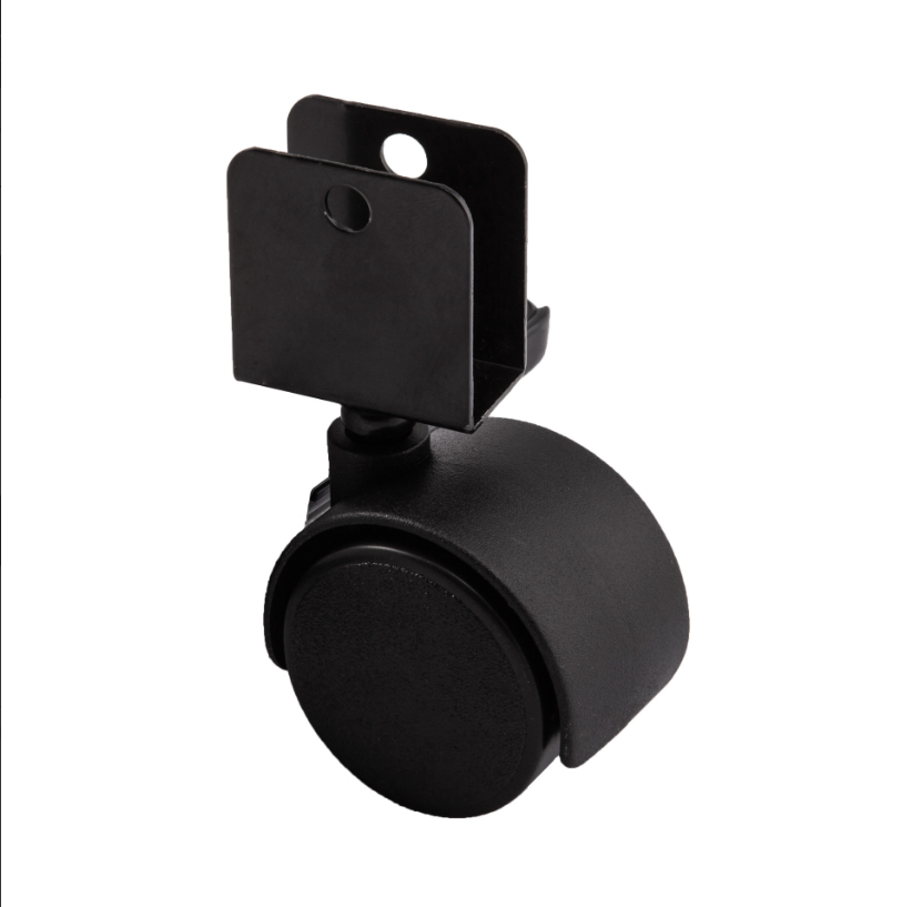 Колесо поворотное пластиковое с U-образное креплением в торец ДСП 16. Рекомендуемая нагрузка на 1 колесо - до 15 кг