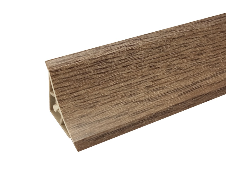 Простота монтажа и ухода, доступная стоимость, высокая влагоустойчивость, эластичность, легкость конструкции и долговечность- основные преимущества кухонного пристеночного плинтуса В2 (23*23).