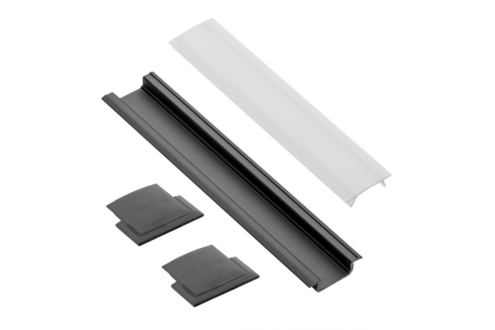 Профиль металлический врезной L-2 м черный для Led ленты GTV(в комплекте крышка + комплект заглушек)